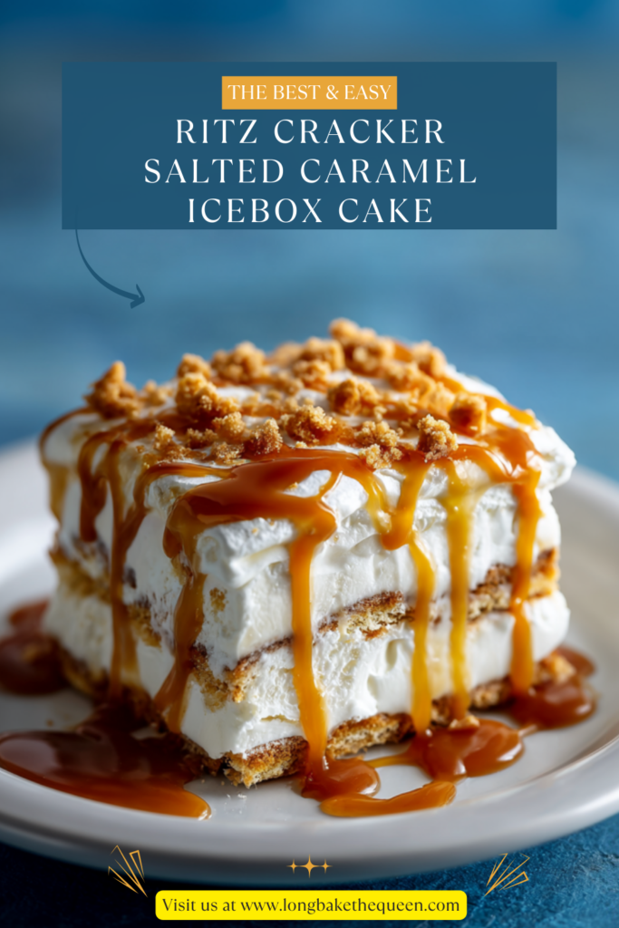 - Repeat: crackers, cream, caramel. One more time. Finish with the last of the cream mixture on top. Cover the dish and refrigerate for at least four hours, but overnight is where the Ritz Cracker Salted Caramel Icebox Cake really becomes itself. The crackers soften, everything settles, and it turns into something that feels way more intentional than it started.